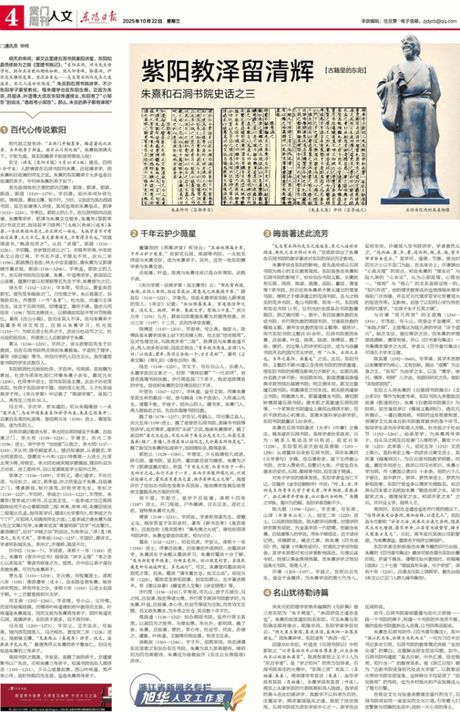 按:本文原刊发于2025年10月22日《东阳日报》,感谢华柯先生对石洞书院的关注和支持,也期待全国各地关心朱子和书院的各界人士支持石洞书院的复兴活化。